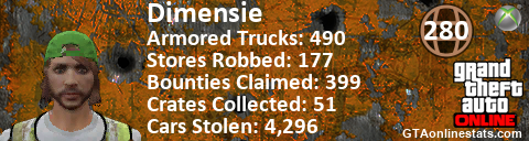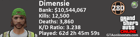[URL=http://GTAonlinestats.com/showplayer/Dimensie/2][IMG]http://GTAonlinestats.com/randomsignature/Dimensie/2/sig.png[/IMG][/URL]