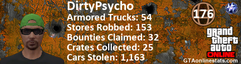 [URL=http://GTAonlinestats.com/showplayer/DirtyPsycho][IMG]http://GTAonlinestats.com/randomsignature/DirtyPsycho/sig.png[/IMG][/URL]