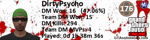 [URL=http://GTAonlinestats.com/showplayer/DirtyPsycho][IMG]http://GTAonlinestats.com/signature/DirtyPsycho/sig.png[/IMG][/URL]