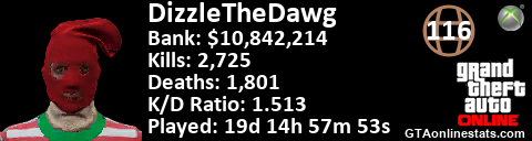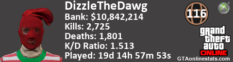 [URL=http://GTAonlinestats.com/showplayer/DizzleTheDawg][IMG]http://GTAonlinestats.com/dmsignature/DizzleTheDawg/sig.png[/IMG][/URL]