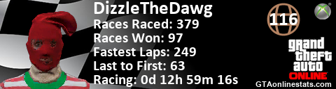 <a href="http://GTAonlinestats.com/showplayer/DizzleTheDawg"><img src="http://GTAonlinestats.com/racesignature/DizzleTheDawg/sig.png" alt="DizzleTheDawg" border="0" /></a>