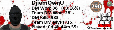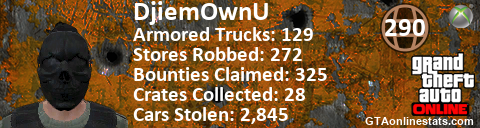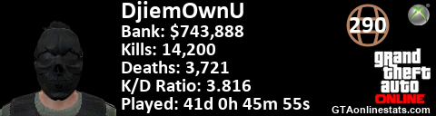[URL=http://GTAonlinestats.com/showplayer/DjiemOwnU][IMG]http://GTAonlinestats.com/randomsignature/DjiemOwnU/sig.png[/IMG][/URL]