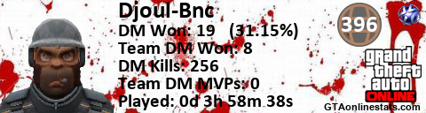 [URL=http://GTAonlinestats.com/showplayer/Djoul-Bnc/2][IMG]http://GTAonlinestats.com/signature/Djoul-Bnc/2/sig.png[/IMG][/URL]