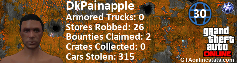 <a href="http://GTAonlinestats.com/showplayer/DkPainapple"><img src="http://GTAonlinestats.com/crimesignature/DkPainapple/sig.png" alt="DkPainapple" border="0" /></a>