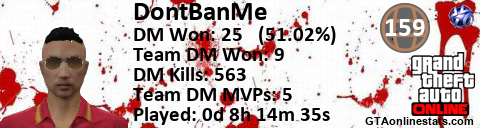 [URL=http://GTAonlinestats.com/showplayer/DontBanMe][IMG]http://GTAonlinestats.com/dmsignature/DontBanMe/sig.png[/IMG][/URL]