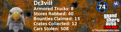 [URL=http://GTAonlinestats.com/showplayer/Dr3vill][IMG]http://GTAonlinestats.com/randomsignature/Dr3vill/sig.png[/IMG][/URL]