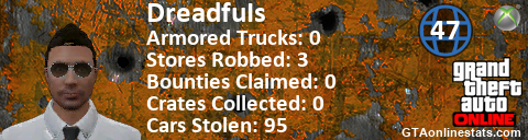 [URL=http://GTAonlinestats.com/showplayer/DreadfuIs][IMG]http://GTAonlinestats.com/randomsignature/DreadfuIs/sig.png[/IMG][/URL]