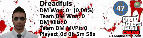 <a href="http://GTAonlinestats.com/showplayer/DreadfuIs"><img src="http://GTAonlinestats.com/dmsignature/DreadfuIs/sig.png" alt="DreadfuIs" border="0" /></a>