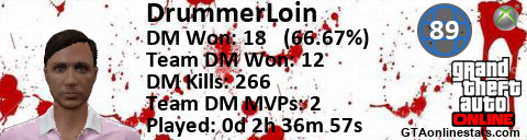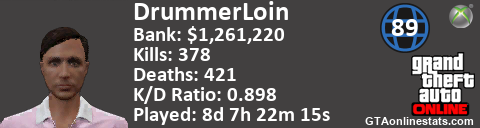<a href="http://GTAonlinestats.com/showplayer/DrummerLoin"><img src="http://GTAonlinestats.com/signature/DrummerLoin/sig.png" alt="DrummerLoin" border="0" /></a>