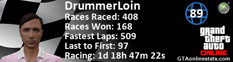 [URL=http://GTAonlinestats.com/showplayer/DrummerLoin][IMG]http://GTAonlinestats.com/racesignature/DrummerLoin/sig.png[/IMG][/URL]