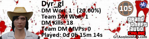 [URL=http://GTAonlinestats.com/showplayer/Dyr_gl/2][IMG]http://GTAonlinestats.com/dmsignature/Dyr_gl/2/sig.png[/IMG][/URL]