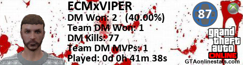 [URL=http://GTAonlinestats.com/showplayer/ECMxVIPER][IMG]http://GTAonlinestats.com/dmsignature/ECMxVIPER/sig.png[/IMG][/URL]