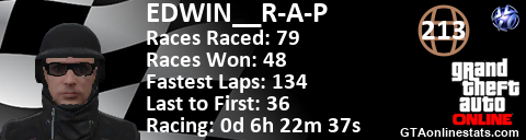 [URL=http://GTAonlinestats.com/showplayer/EDWIN__R-A-P][IMG]http://GTAonlinestats.com/racesignature/EDWIN__R-A-P/sig.png[/IMG][/URL]