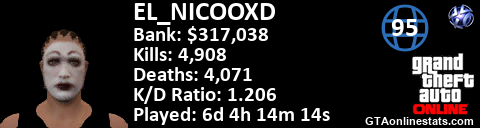 <a href="http://GTAonlinestats.com/showplayer/EL_NICOOXD"><img src="http://GTAonlinestats.com/randomsignature/EL_NICOOXD/sig.png" alt="EL_NICOOXD" border="0" /></a>