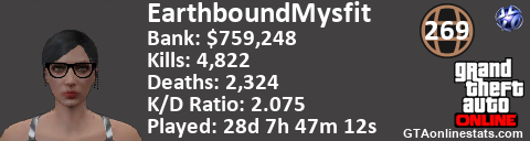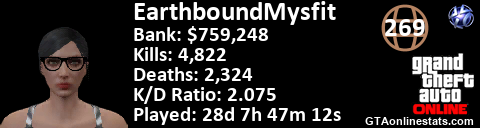 <a href="http://GTAonlinestats.com/showplayer/EarthboundMysfit"><img src="http://GTAonlinestats.com/signature/EarthboundMysfit/sig.png" alt="EarthboundMysfit" border="0" /></a>