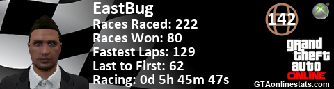 [URL=http://GTAonlinestats.com/showplayer/EastBug][IMG]http://GTAonlinestats.com/racesignature/EastBug/sig.png[/IMG][/URL]