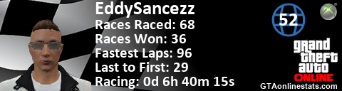 [URL=http://GTAonlinestats.com/showplayer/EddySancezz][IMG]http://GTAonlinestats.com/racesignature/EddySancezz/sig.png[/IMG][/URL]