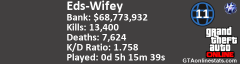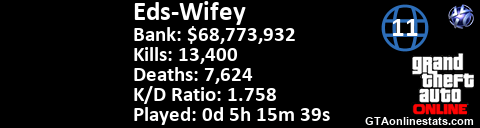 [URL=http://GTAonlinestats.com/showplayer/Eds-Wifey/2][IMG]http://GTAonlinestats.com/randomsignature/Eds-Wifey/2/sig.png[/IMG][/URL]