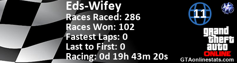 [URL=http://GTAonlinestats.com/showplayer/Eds-Wifey/2][IMG]http://GTAonlinestats.com/racesignature/Eds-Wifey/2/sig.png[/IMG][/URL]