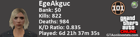 <a href="http://GTAonlinestats.com/showplayer/EgeAkguc"><img src="http://GTAonlinestats.com/randomsignature/EgeAkguc/sig.png" alt="EgeAkguc" border="0" /></a>