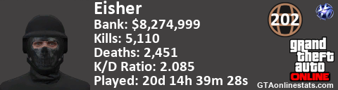 <a href="http://GTAonlinestats.com/showplayer/Eisher"><img src="http://GTAonlinestats.com/signature/Eisher/sig.png" alt="Eisher" border="0" /></a>