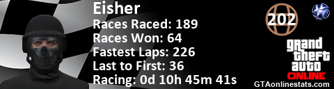 <a href="http://GTAonlinestats.com/showplayer/Eisher"><img src="http://GTAonlinestats.com/racesignature/Eisher/sig.png" alt="Eisher" border="0" /></a>