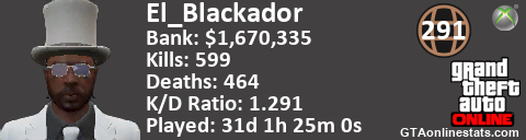 <a href="http://GTAonlinestats.com/showplayer/El_Blackador"><img src="http://GTAonlinestats.com/signature/El_Blackador/sig.png" alt="El_Blackador" border="0" /></a>