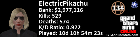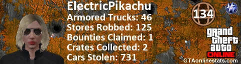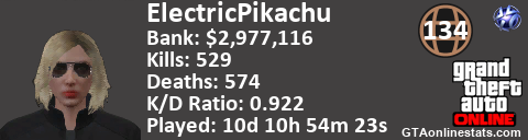 [URL=http://GTAonlinestats.com/showplayer/ElectricPikachu][IMG]http://GTAonlinestats.com/signature/ElectricPikachu/sig.png[/IMG][/URL]