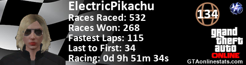 [URL=http://GTAonlinestats.com/showplayer/ElectricPikachu][IMG]http://GTAonlinestats.com/racesignature/ElectricPikachu/sig.png[/IMG][/URL]