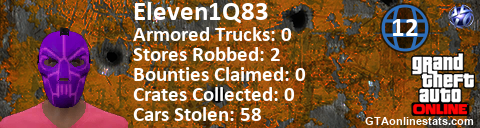 [URL=http://GTAonlinestats.com/showplayer/Eleven1Q83][IMG]http://GTAonlinestats.com/crimesignature/Eleven1Q83/sig.png[/IMG][/URL]
