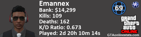 <a href="http://GTAonlinestats.com/showplayer/Emannex"><img src="http://GTAonlinestats.com/signature/Emannex/sig.png" alt="Emannex" border="0" /></a>