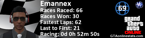 <a href="http://GTAonlinestats.com/showplayer/Emannex"><img src="http://GTAonlinestats.com/racesignature/Emannex/sig.png" alt="Emannex" border="0" /></a>