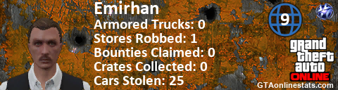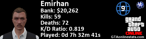 <a href="http://GTAonlinestats.com/showplayer/Emirhan"><img src="http://GTAonlinestats.com/randomsignature/Emirhan/sig.png" alt="Emirhan" border="0" /></a>