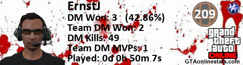 [URL=http://GTAonlinestats.com/showplayer/ErnstJ][IMG]http://GTAonlinestats.com/dmsignature/ErnstJ/sig.png[/IMG][/URL]