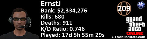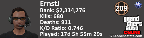 <a href="http://GTAonlinestats.com/showplayer/ErnstJ"><img src="http://GTAonlinestats.com/dmsignature/ErnstJ/sig.png" alt="ErnstJ" border="0" /></a>