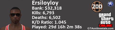 <a href="http://GTAonlinestats.com/showplayer/Ersiloyloy"><img src="http://GTAonlinestats.com/signature/Ersiloyloy/sig.png" alt="Ersiloyloy" border="0" /></a>