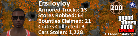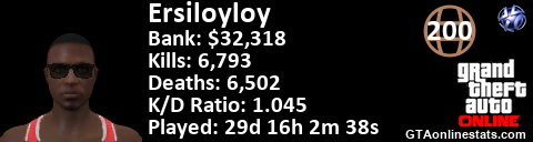 [URL=http://GTAonlinestats.com/showplayer/Ersiloyloy][IMG]http://GTAonlinestats.com/signature/Ersiloyloy/sig.png[/IMG][/URL]