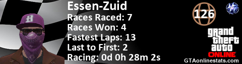 <a href="http://GTAonlinestats.com/showplayer/Essen-Zuid"><img src="http://GTAonlinestats.com/racesignature/Essen-Zuid/sig.png" alt="Essen-Zuid" border="0" /></a>