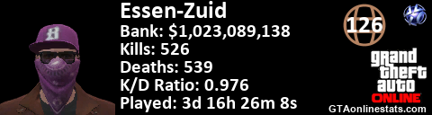 <a href="http://GTAonlinestats.com/showplayer/Essen-Zuid"><img src="http://GTAonlinestats.com/randomsignature/Essen-Zuid/sig.png" alt="Essen-Zuid" border="0" /></a>