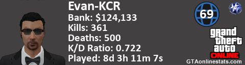 [URL=http://GTAonlinestats.com/showplayer/Evan-KCR][IMG]http://GTAonlinestats.com/greysignature/Evan-KCR/sig.png[/IMG][/URL]