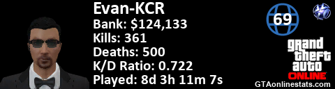 [URL=http://GTAonlinestats.com/showplayer/Evan-KCR][IMG]http://GTAonlinestats.com/signature/Evan-KCR/sig.png[/IMG][/URL]
