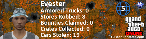 <a href="http://GTAonlinestats.com/showplayer/Evester"><img src="http://GTAonlinestats.com/crimesignature/Evester/sig.png" alt="Evester" border="0" /></a>