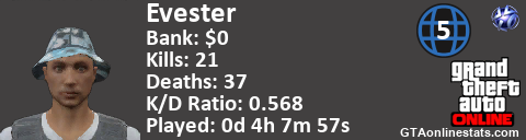 [URL=http://GTAonlinestats.com/showplayer/Evester][IMG]http://GTAonlinestats.com/dmsignature/Evester/sig.png[/IMG][/URL]