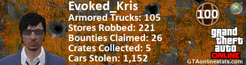 [URL=http://GTAonlinestats.com/showplayer/Evoked_Kris][IMG]http://GTAonlinestats.com/signature/Evoked_Kris/sig.png[/IMG][/URL]