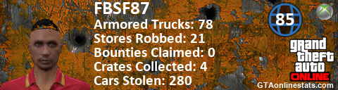 [URL=http://GTAonlinestats.com/showplayer/FBSF87][IMG]http://GTAonlinestats.com/crimesignature/FBSF87/sig.png[/IMG][/URL]