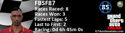 [URL=http://GTAonlinestats.com/showplayer/FBSF87][IMG]http://GTAonlinestats.com/racesignature/FBSF87/sig.png[/IMG][/URL]