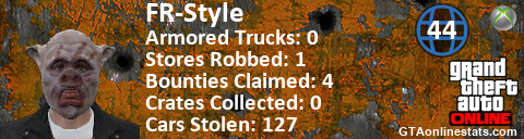 [URL=http://GTAonlinestats.com/showplayer/FR-Style/2][IMG]http://GTAonlinestats.com/crimesignature/FR-Style/2/sig.png[/IMG][/URL]