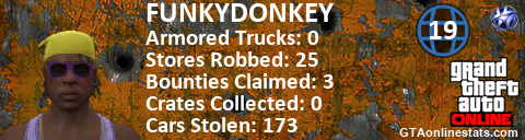 <a href="http://GTAonlinestats.com/showplayer/FUNKYDONKEY"><img src="http://GTAonlinestats.com/crimesignature/FUNKYDONKEY/sig.png" alt="FunkyDonkey" border="0" /></a>