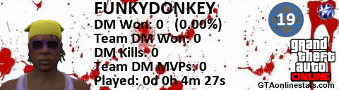 [URL=http://GTAonlinestats.com/showplayer/FUNKYDONKEY][IMG]http://GTAonlinestats.com/dmsignature/FUNKYDONKEY/sig.png[/IMG][/URL]