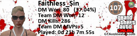 [URL=http://GTAonlinestats.com/showplayer/Faithless_Sin/2][IMG]http://GTAonlinestats.com/dmsignature/Faithless_Sin/2/sig.png[/IMG][/URL]